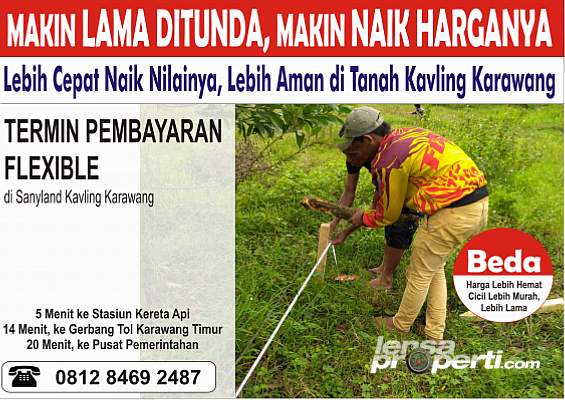 Sertifikat langsung nama Pemesan kavlingKini saatnya anda punya Tanah Kavling Karawang yang memberikan kenyamanan dari segi Cicilan dan Harga.