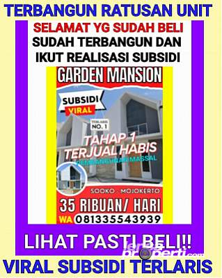 Hadir Kembali dengan Perumahan Baru Subsidi GARDEN MANSION Pusat Kota Mojokerto yang memiliki lokasi Terstrategis di Sooko Mojokerto Pusat Kota Hanya 5 Menit dari alun2 Mojokerto, Exit Tol & Stasiun Kereta Api.